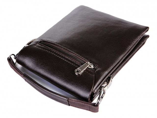Стильний чоловічий аксесуар під планшет та інші особисті речі. Виготовлена сумка з високоякісної шкіри PU. Під клапаном міститься основне відділення на блискавці. Усередині йде поділ на три частини, є прилеглі кишені. Зовні представлена одна врізна кишеня на блискавці для дрібниць. Носити аксесуар зручно на плечовому ремені, який знімається й регулюється за довжиною. У нашому інтернет-магазині великий вибір сумок з екошкіри за доступними цінами.